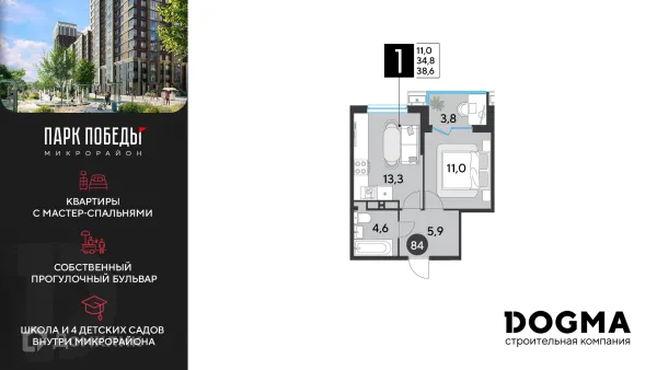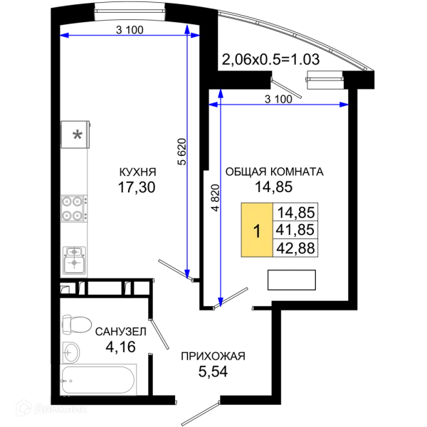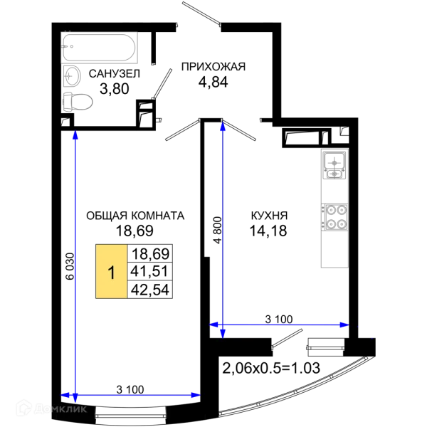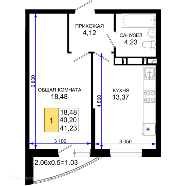 1 комн. квартира в Краснодаре в ипотеку от 41 105 руб/месяц
