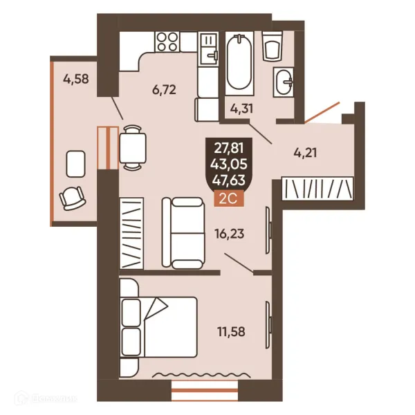 2 комн. квартира в Новосибирске в ипотеку от 46 629 руб/месяц