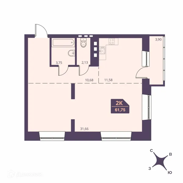 2 комн. квартира в Новосибирске в ипотеку от 61 928 руб/месяц