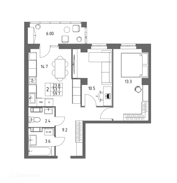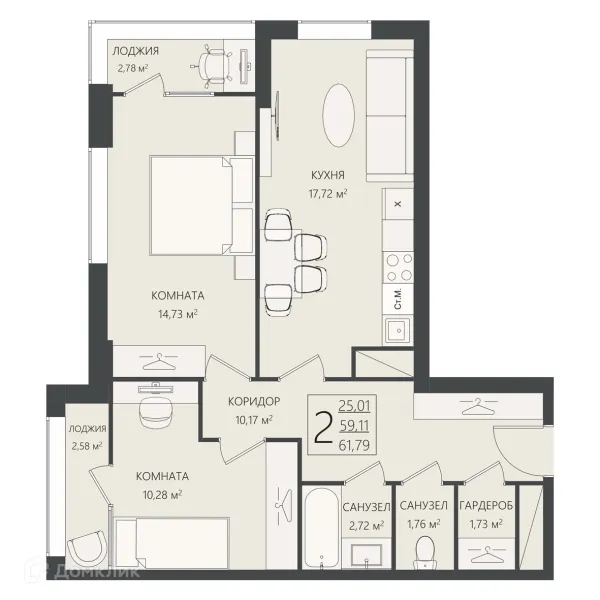 2 комн. квартира в Волгограде в ипотеку от 59 761 руб/месяц