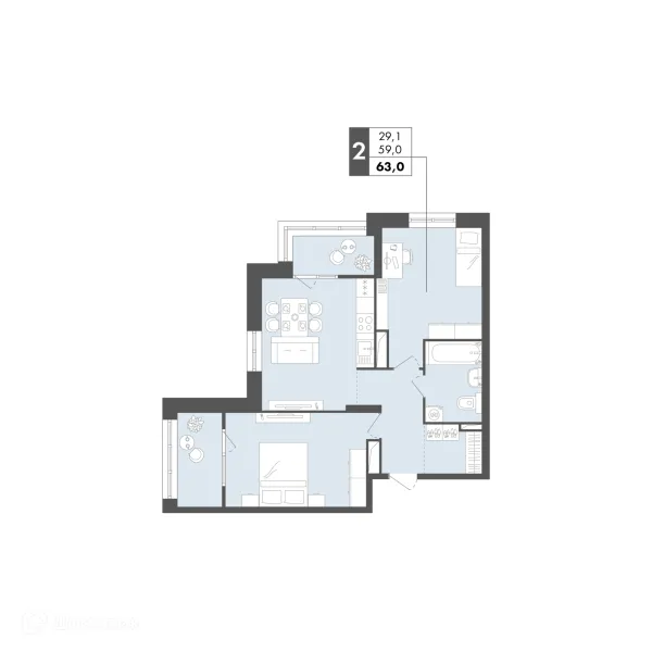 2 комн. квартира в Волгограде в ипотеку от 63 512 руб/месяц
