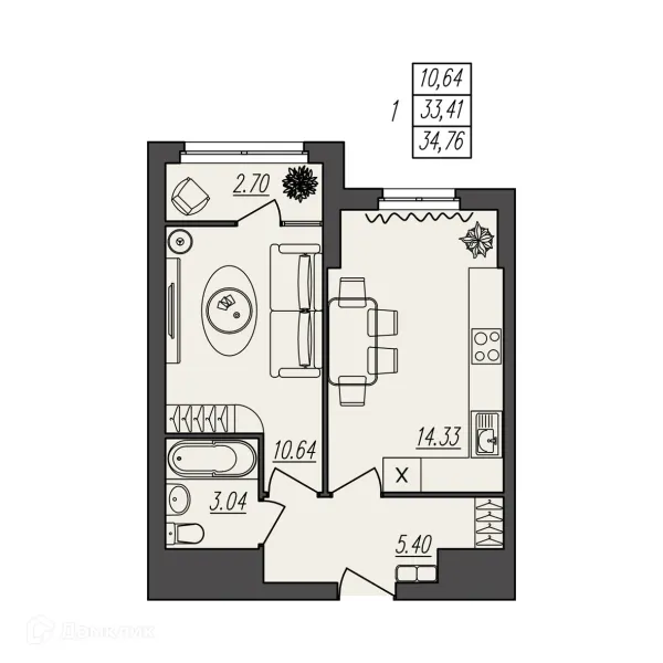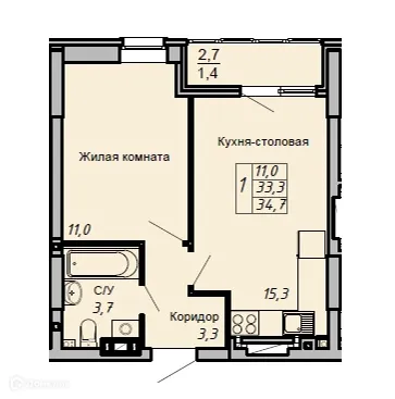 1 комн. квартира в Волгограде в ипотеку от 34 233 руб/месяц