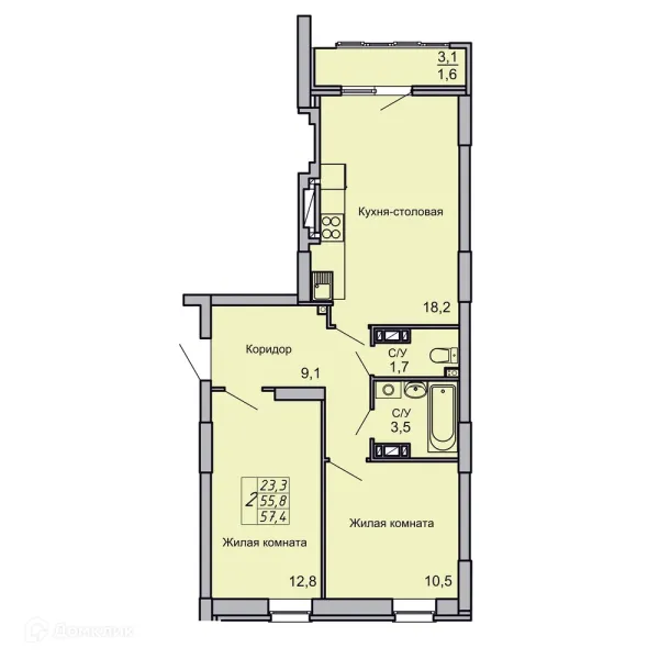 2 комн. квартира в Волгограде в ипотеку от 58 112 руб/месяц