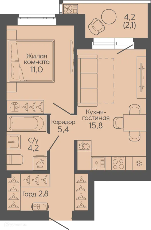 1 комн. квартира в Волгограде в ипотеку от 43 861 руб/месяц