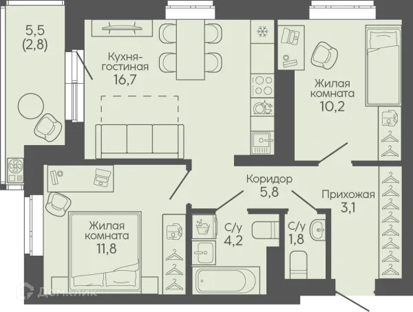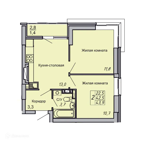 2 комн. квартира в Волгограде в ипотеку от 51 263 руб/месяц