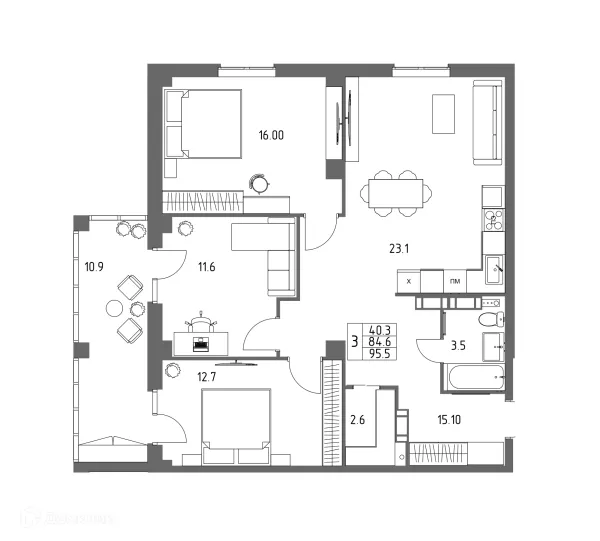 3 комн. квартира в Волгограде в ипотеку от 64 313 руб/месяц
