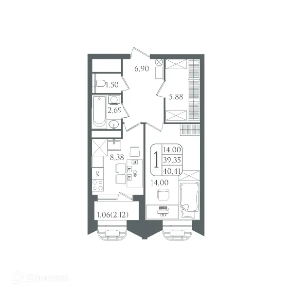 1 комн. квартира в Волгограде в ипотеку от 42 282 руб/месяц