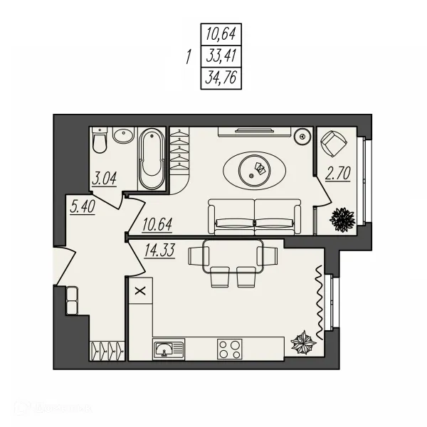 1 комн. квартира в Волгограде в ипотеку от 43 052 руб/месяц
