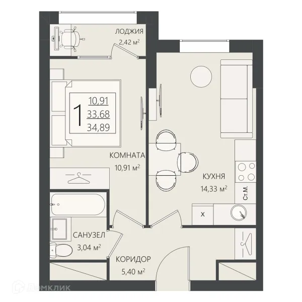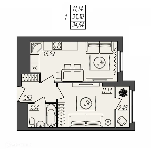 1 комн. квартира в Волгограде в ипотеку от 29 907 руб/месяц