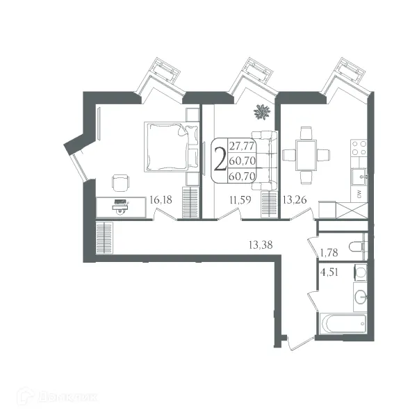 2 комн. квартира в Волгограде в ипотеку от 59 789 руб/месяц