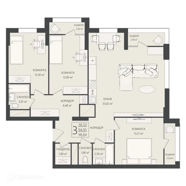 3 комн. квартира в Волгограде в ипотеку от 92 893 руб/месяц