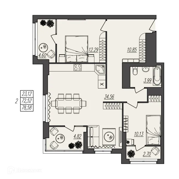 2 комн. квартира в Волгограде в ипотеку от 90 603 руб/месяц