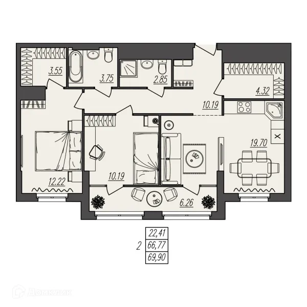 2 комн. квартира в Волгограде в ипотеку от 89 812 руб/месяц