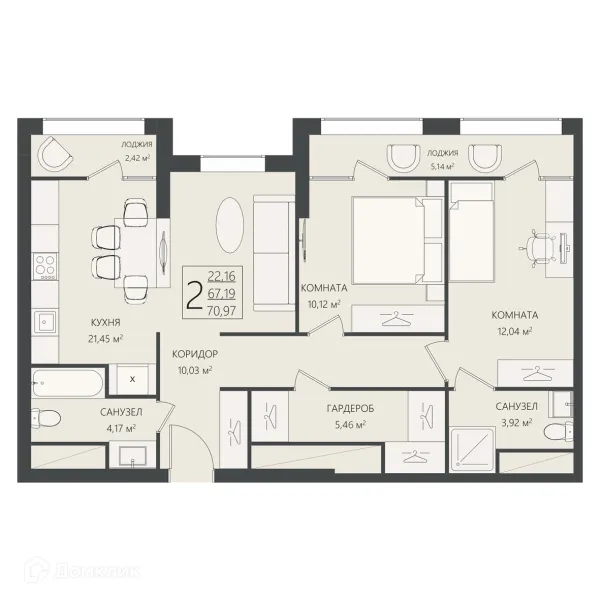 2 комн. квартира в Волгограде в ипотеку от 42 845 руб/месяц