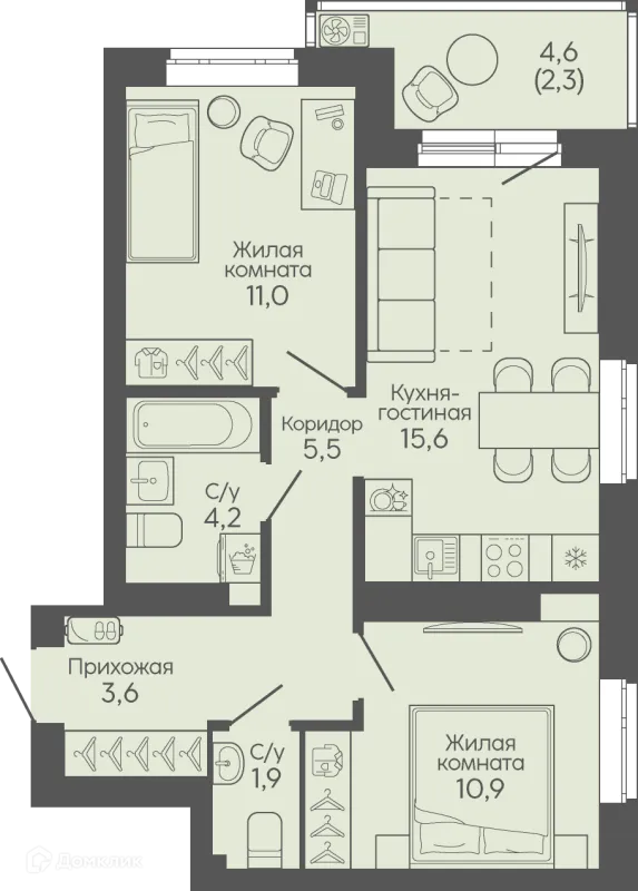 2 комн. квартира в Волгограде в ипотеку от 59 761 руб/месяц