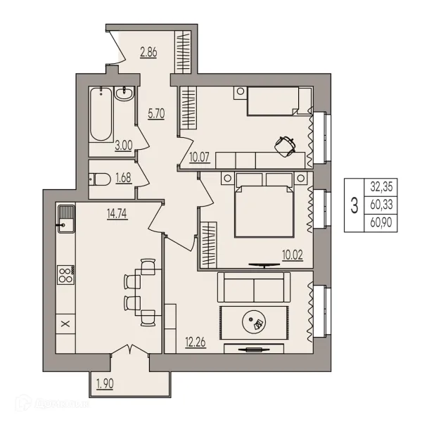 3 комн. квартира в Волгограде в ипотеку от 74 854 руб/месяц