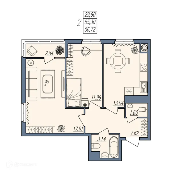 2 комн. квартира в Волгограде в ипотеку от 56 768 руб/месяц