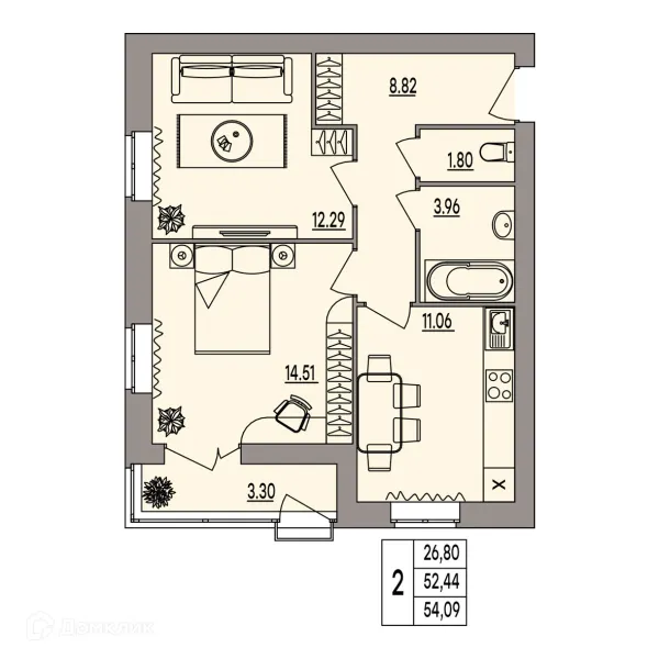 2 комн. квартира в Волгограде в ипотеку от 54 530 руб/месяц