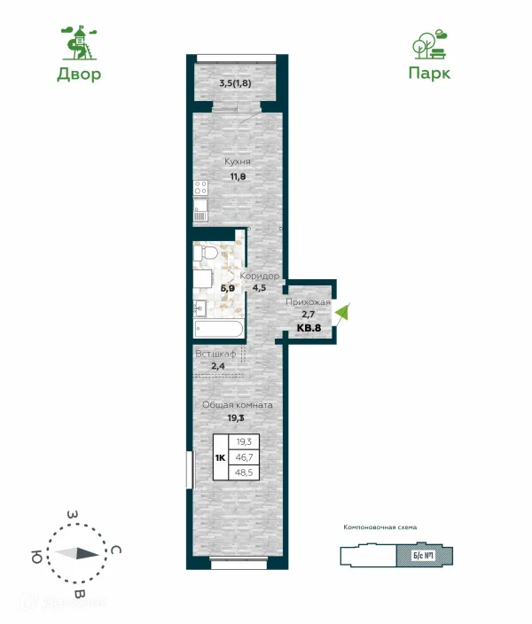 1 комн. квартира в Новосибирске в ипотеку от 61 928 руб/месяц