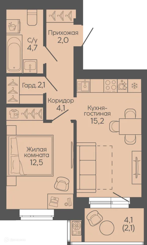 1 комн. квартира в Волгограде в ипотеку от 42 125 руб/месяц