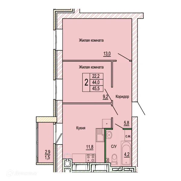 2 комн. квартира в Волгограде в ипотеку от 59 494 руб/месяц