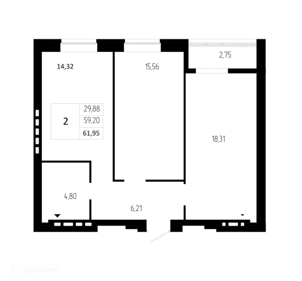 2 комн. квартира в Волгограде в ипотеку от 58 688 руб/месяц