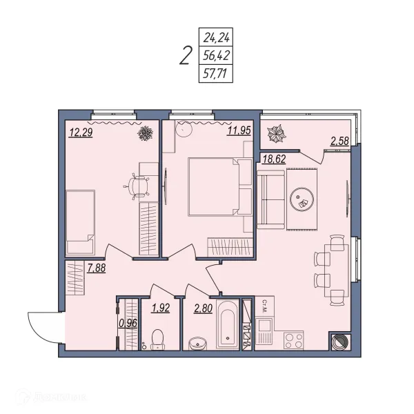 2 комн. квартира в Волгограде в ипотеку от 57 592 руб/месяц