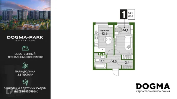 1 комн. квартира в Краснодаре в ипотеку от 41 860 руб/месяц