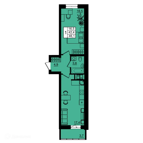 1 комн. квартира в Волгограде в ипотеку от 46 302 руб/месяц