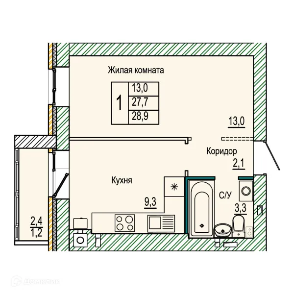 1 комн. квартира в Волгограде в ипотеку от 25 703 руб/месяц