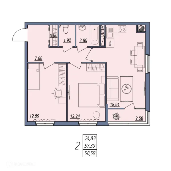 2 комн. квартира в Волгограде в ипотеку от 57 592 руб/месяц