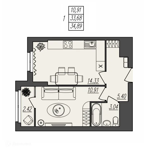 1 комн. квартира в Волгограде в ипотеку от 33 988 руб/месяц