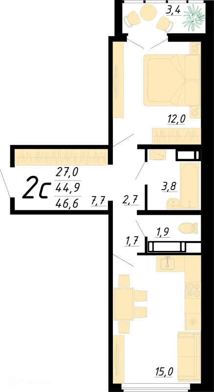 2 комн. квартира в Воронеже в ипотеку от 57 749 руб/месяц