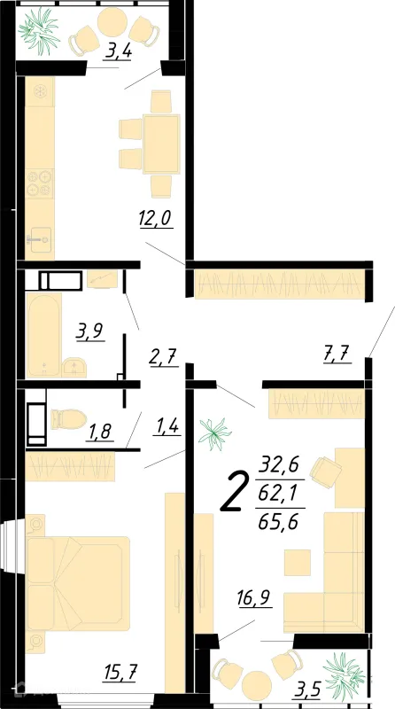 2 комн. квартира в Воронеже в ипотеку от 73 486 руб/месяц