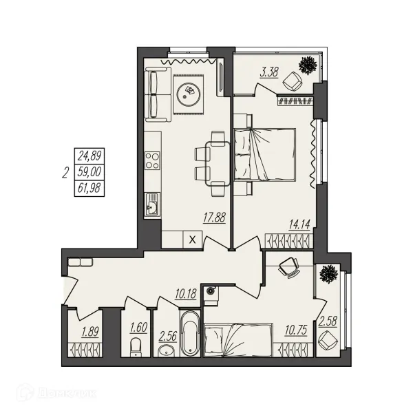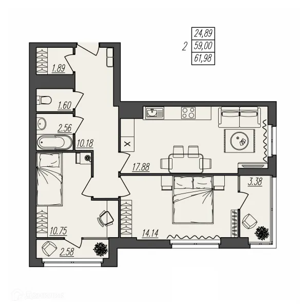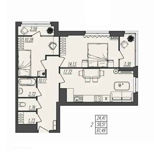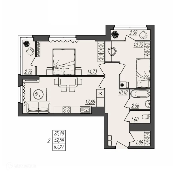 2 комн. квартира в Волгограде в ипотеку от 59 408 руб/месяц