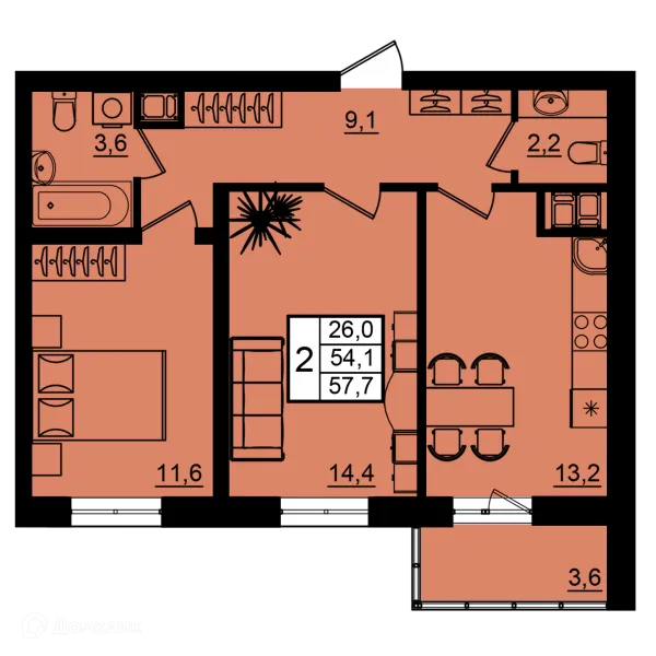 2 комн. квартира в Волгограде в ипотеку от 106 574 руб/месяц