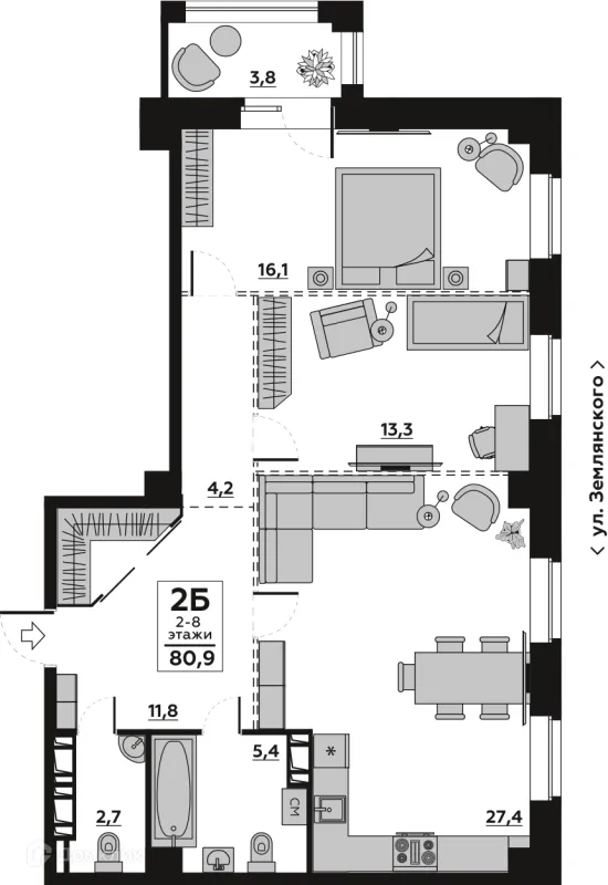 2 комн. квартира в Волгограде в ипотеку от 41 345 руб/месяц