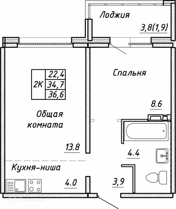 2 комн. квартира в Новосибирске в ипотеку от 34 276 руб/месяц
