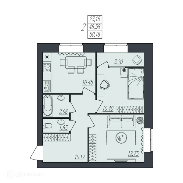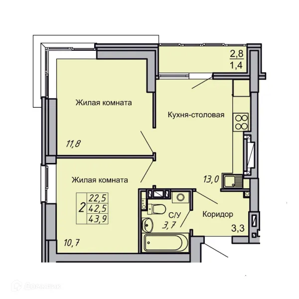 2 комн. квартира в Волгограде в ипотеку от 49 845 руб/месяц