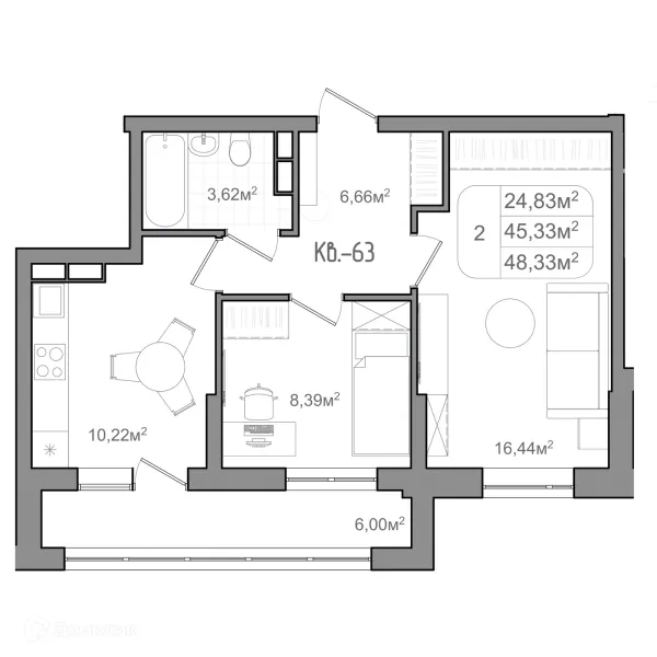 2 комн. квартира в Волгограде в ипотеку от 44 915 руб/месяц
