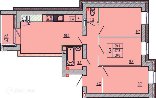3 комн. квартира в Волгограде в ипотеку от 64 449 руб/месяц
