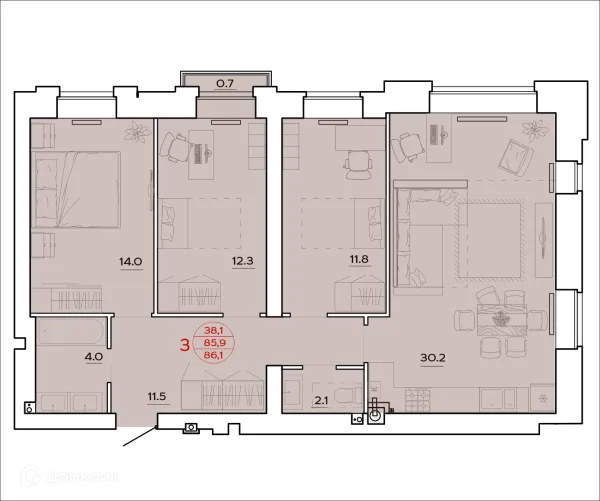 3 комн. квартира в Волгограде в ипотеку от 130 698 руб/месяц