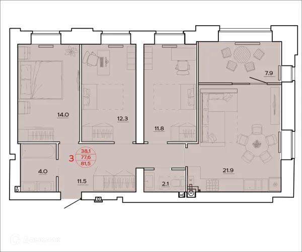 3 комн. квартира в Волгограде в ипотеку от 78 635 руб/месяц