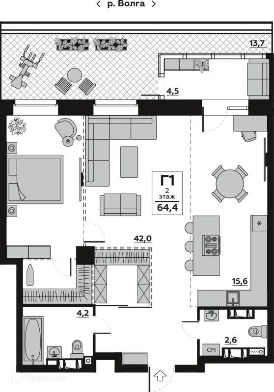 1 комн. квартира в Волгограде в ипотеку от 61 568 руб/месяц