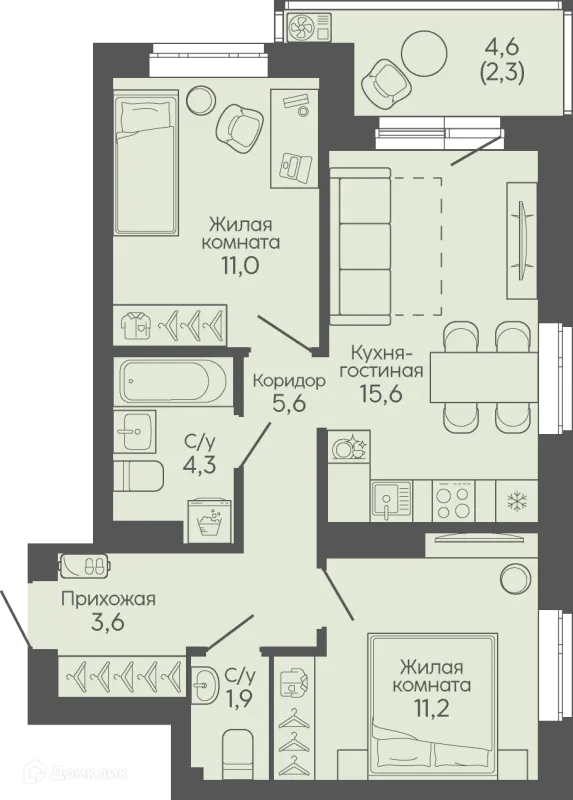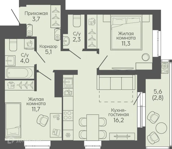 2 комн. квартира в Волгограде в ипотеку от 44 811 руб/месяц