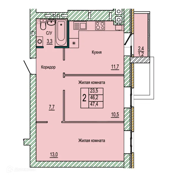 2 комн. квартира в Волгограде в ипотеку от 46 667 руб/месяц