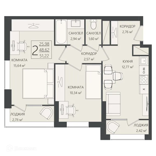2 комн. квартира в Волгограде в ипотеку от 145 046 руб/месяц