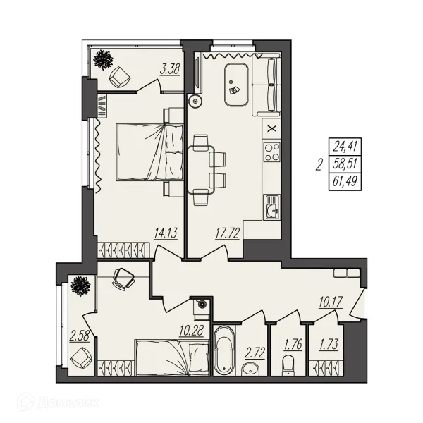 2 комн. квартира в Волгограде в ипотеку от 72 174 руб/месяц