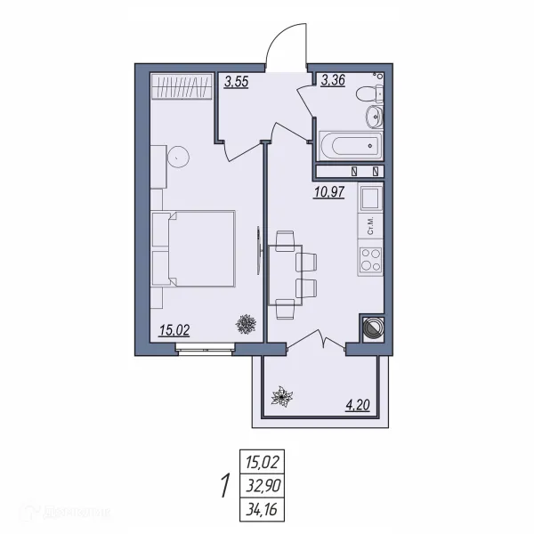 1 комн. квартира в Волгограде в ипотеку от 35 582 руб/месяц