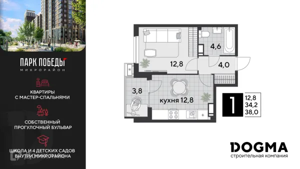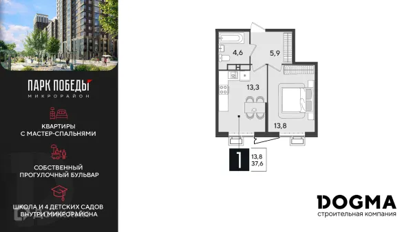1 комн. квартира в Краснодаре в ипотеку от 52 960 руб/месяц